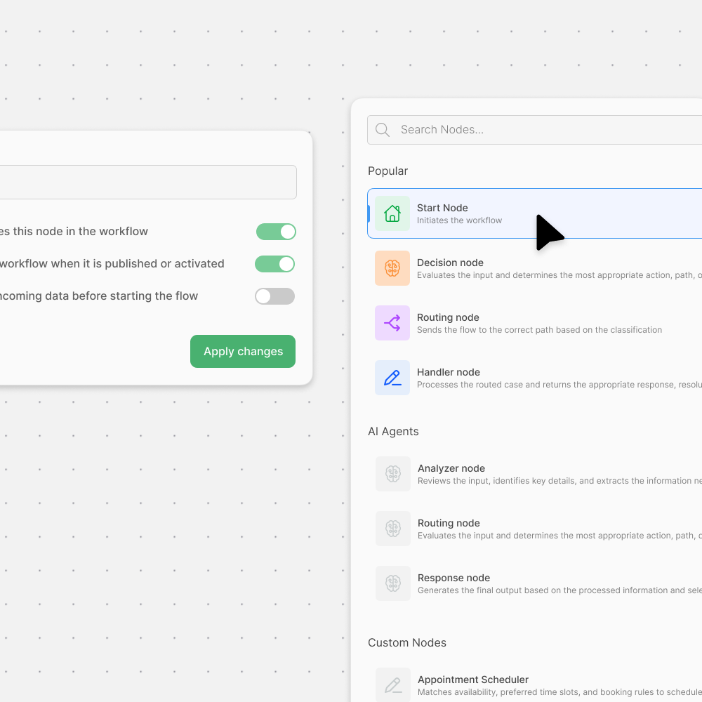 Design and manage intelligent processes through an intuitive, graph-based interface. Complex logic becomes easy to understand, review, and evolve collaboratively.