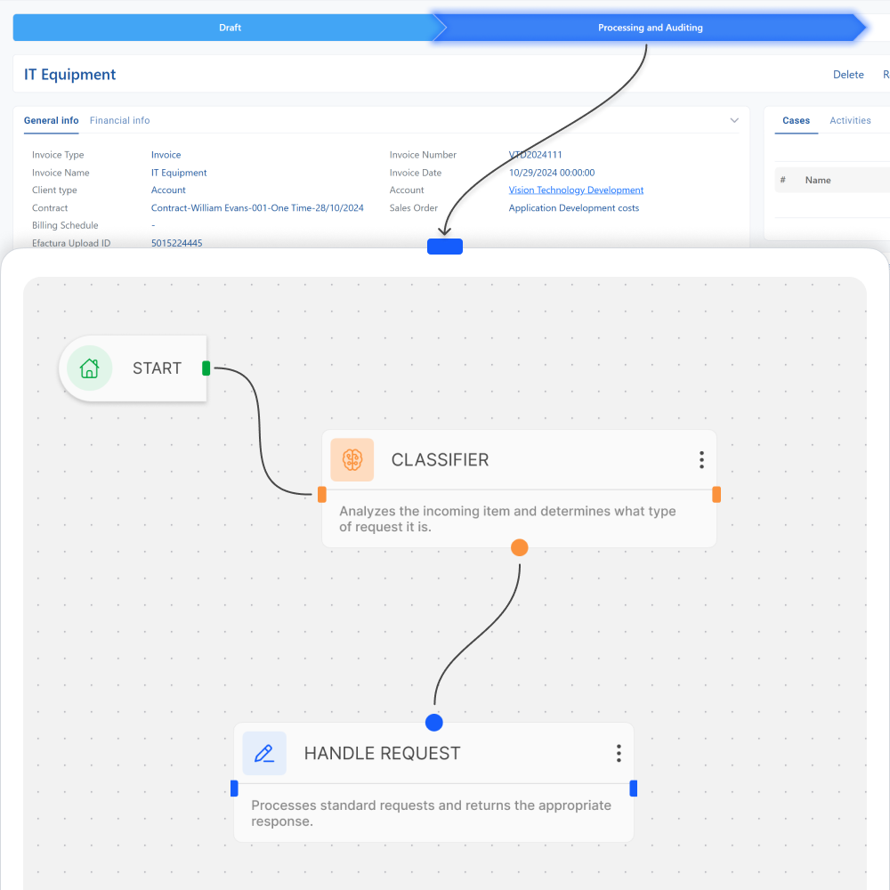 Design and manage intelligent processes through an intuitive, graph-based interface. Complex logic becomes easy to understand, review, and evolve collaboratively.