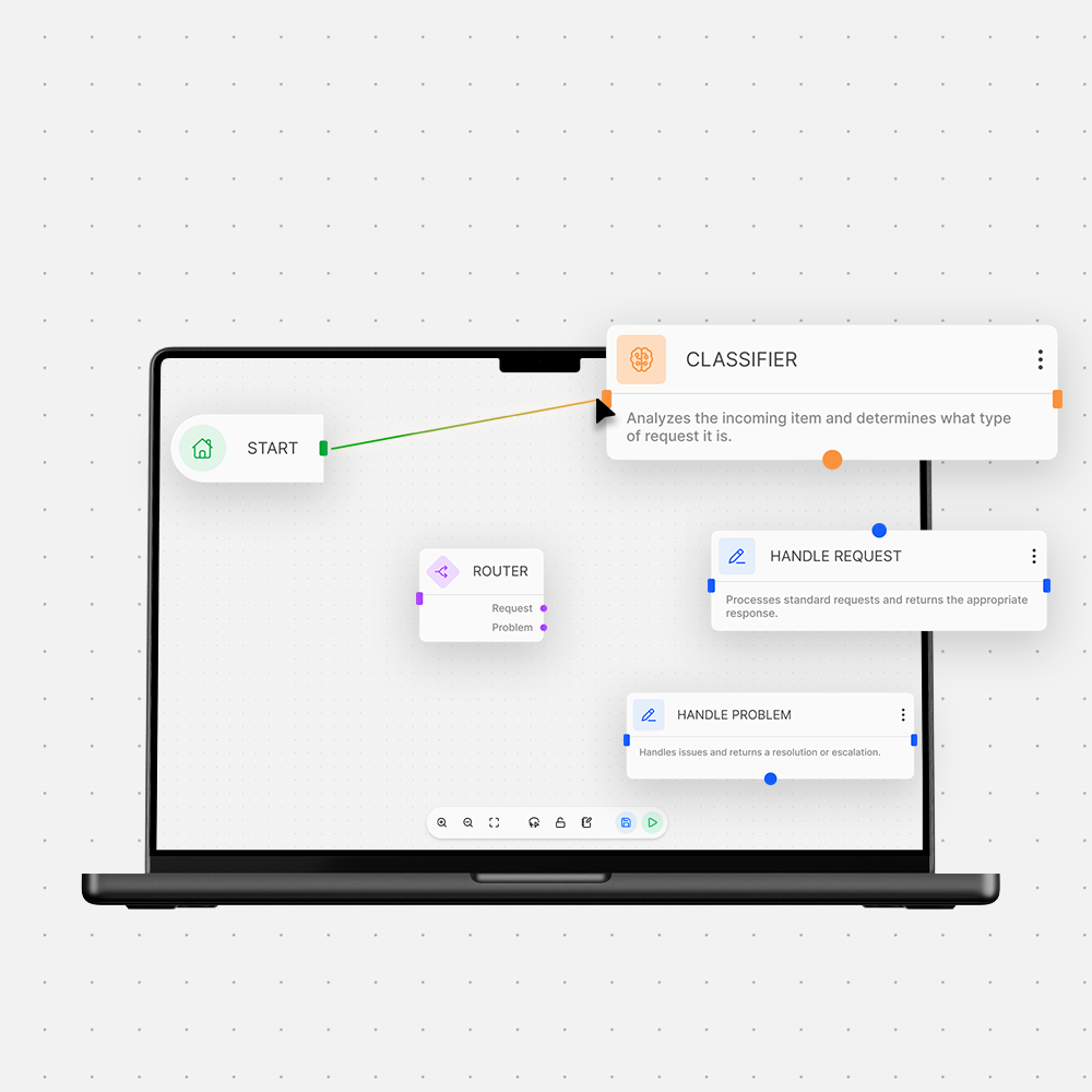 Complex coordination between intelligent components is expressed through a structured, declarative logic layer. This orchestration model supports conditional paths, parallel execution, dependencies, and decision branching. As a result, intelligent behavior is deterministic, traceable, and explainable. Advanced logic can be modeled without sacrificing clarity or control.
